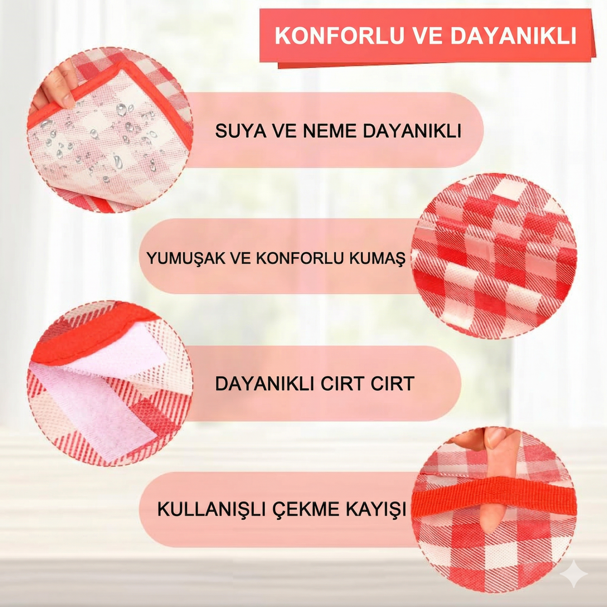Ürün Özellikleri- Şık karo (ızgara) desen ile estetik ve dikkat çekici tasarım